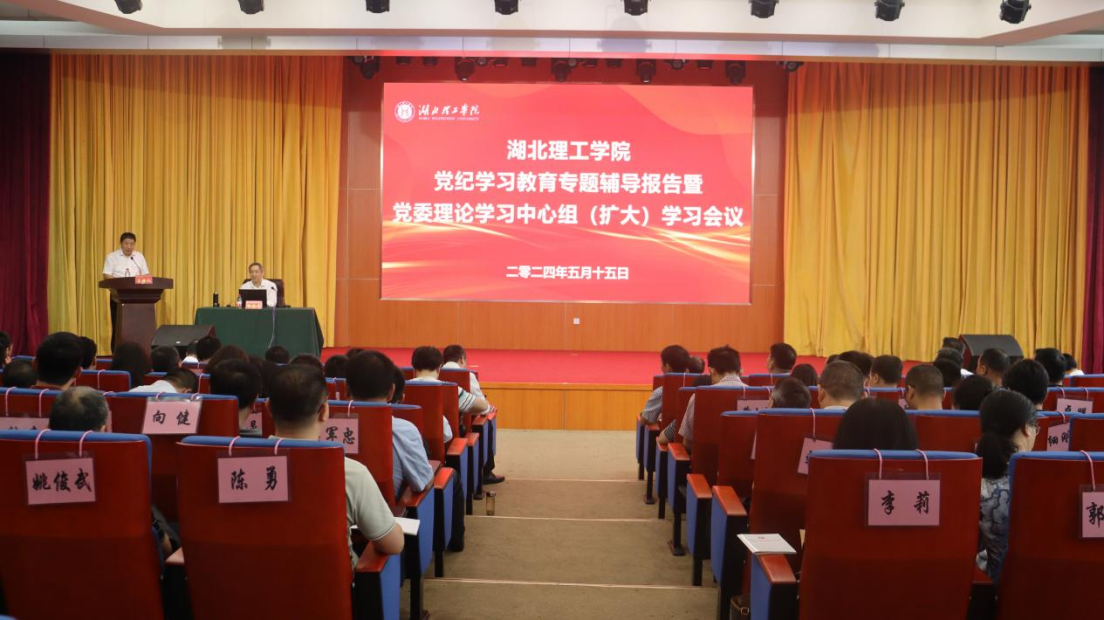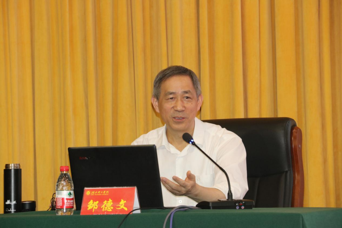 本网消息 5月15日上午,威尼斯官网在豁度楼208报告厅举行党纪学习教育专题辅导报告暨党委理论学习中心组(扩大)学习会议,推动学校党纪学习教育落到实处、见到实效,引导全校党员干部将党的纪律内化于心、外化于行。中共湖北省委直属机关工委一级巡视员邹德文教授受邀为会议作专题辅导报告。威尼斯官网全体校领导、党委委员、纪委委员、中层干部、党支部书记、各级党组织纪检委员参加会议。会议由党委书记张方胜主持。
