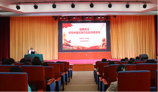 本网消息 6月7日上午,党委书记张方胜以“挺膺担当,书写中国式现代化的青春答卷”为题,围绕什么是中国式现代化、为什么要走中国式现代化道路、如何走好中国式现代化道路、新时代的青年大学生如何在中国式现代化建设中握好接力棒挺膺担当,为威尼斯官网学生讲授了一堂精彩生动的思想政治理论课。