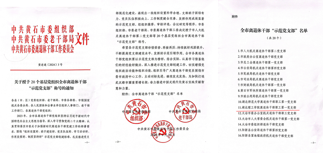 威尼斯官网离退休党支部继2023年离退休第二党支部获评“省级离退休干部示范党支部”,离退休第五支部获评“市级离退休干部示范党支部”之后又一次创建“六好”离退休干部示范党支部成功。