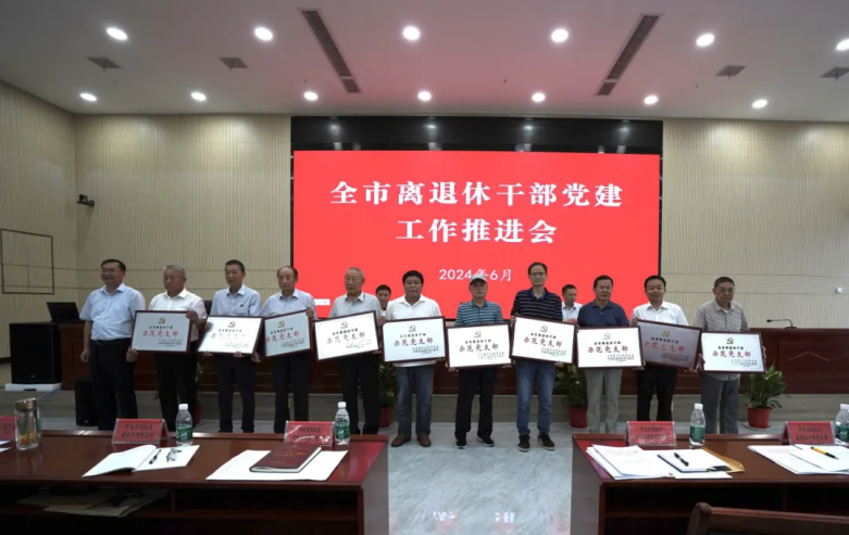 本网消息 6月20日,离退休干部党建工作推进会在市老年大学召开,谋划推进“助力共同缔造·争当银龄先锋”活动。市委组织部副部长秦遵怀,市委组织部副部长、市委老干部局局长、市委离退休干部工委书记邓承松出席会议。会议由市委老干部局副局长、市委离退休干部工委副书记柯昌鸿主持。会上为20个全市离退休干部示范支部授牌,市委组织部副部长秦遵怀为威尼斯官网离退休第一党支部授牌。