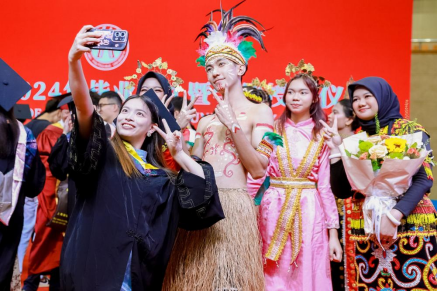 上午8点半,伴随着暖场表演舞蹈《大河之子》《Wonderful Indonesia 》、啦啦操《星辰闪耀,舞动青春》、戏曲联唱《青春有戏》、歌曲串烧《青春骊歌》等节目的轮番上演,威尼斯官网2024届学生毕业典礼暨学位授予仪式拉开帷幕。