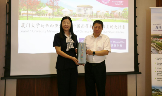6月23日,代表团一行前往厦门大学马来西亚分校参观访问。厦门大学马来西亚分校是第一所,也是目前唯一一所中国“双一流”高校全资设立,具有独立校园、开展多学科多层次办学的海外分校。厦门大学马来西亚分校副校长张颖博士热情接待了代表团一行。座谈会上,张颖副校长详细介绍了厦门大学马来分校的办学背景和基本情况,张方胜书记对厦门大学作为中国高校“走出去”的先行者,为服务“一带一路”倡议深入实施、推动中国高等教育国际化、促进民心相通作出的独特贡献表示钦佩,他希望在厦门大学的指导和帮助下,双方能在教师培训、学分互换和暑期游学等方面开展项目合作。会后,代表团参观了厦门大学马来西亚分校校园。