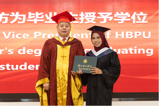 MOHAMMAD DANDRIYANDI TOMU(常青),ADITI SUNIL PATIL(雪音)和MUHAMMAD FAJAR SETYAWAN(马智敏)代表毕业生发言,他们纷纷表达了对学校和老师们的感谢,对来自世界各地的同学的感激,承诺用他们的聪明才智,为“一带一路”沿线国家医疗卫生事业发展作出湖理人的贡献。