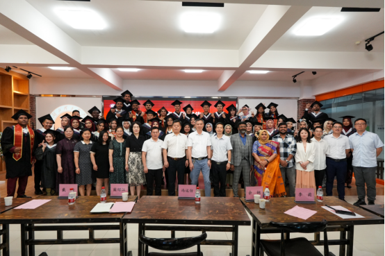本网消息 当仲夏的阳光透过葱郁的香樟,在桂林北路上洒下点点金光,当习习的微风拂过双镜湖面,为校园各处捎去缕缕花香,一年一度的青春骊歌已悄然唱响。近日,国际学院2024年来华留学生毕业典礼暨学位授予仪式在学校创业大楼慧谷众创咖啡厅举行,校党委常委、副校长冯运仿出席仪式;职能部门、爱康医院和学生家长代表、国际学院全体教职工、2024届全体来华留学毕业生参加毕业典礼暨学位授予仪式,学院党总支部书记郭淑英主持毕业典礼。
