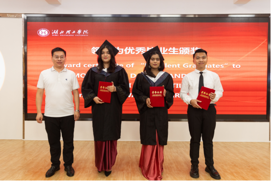 典礼在雄壮的中华人民共和国国歌声中拉开序幕,国际学院党总支部副书记刘红云宣读《关于表扬2024届优秀毕业生的决定》文件,教务处处长蔺绍江为优秀毕业生颁发荣誉证书。