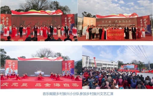 教师党员雷晓伟带领的音乐赋能乡村振兴小分队、王振华老师带领的“校园戏曲传承计划”成员、任薪谚老师带领的室内管弦乐团活跃在国内各大舞台上,他们通过自己的方式发出理工声音,结合“思政+音乐”、“思政+戏曲”,为传播红色音乐文化与传统音乐文化作出贡献,践行“一名党员就是一面旗帜”的使命与担当。