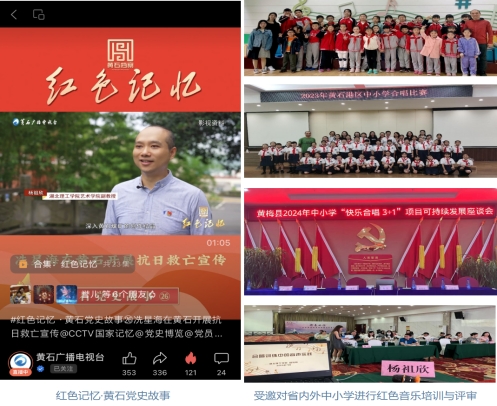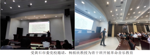 2023年,杨祖欣博士参与了黄石市档案馆《红色记忆》栏目的录制;带领新空气合唱团学生前往武汉琴台音乐厅参加黄河大合唱暨2024年新年音乐会,该演出活动由华中师范大学主办,清华大学等知名院校联合协办;主持策划《唱山歌给党听》庆祝建党102周年湖北省鄂东片区红色经典合唱音乐会;多次与黄石市委党校、省内外部分中小学对接,开展红色音乐文化培训和相关评审工作。
