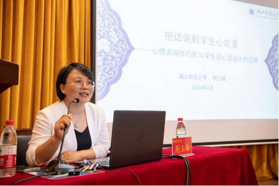 7月9日上午,湖北师范大学心理学教授荆玉梅,以《把话说到学生心坎里——心理咨询技巧在与学生谈心谈话中的应用》为题做了开班首场讲座,讲座从需要会说、学着会说、尝试来说三个方面,阐述了新时期高校育人工作者必备的能力素养,传递了心理学谈话技巧,表明了在实践中认清自己风格的重要性。启示辅导员要主动走进青年、倾听青年,做青年朋友的知心人,关心青年、关爱青年,做青年工作的热心人,教育青年、引导青年,做青年群众的引路人。