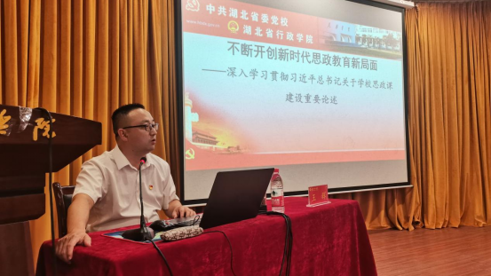 7月9日下午,湖北省委党校政法教研部主任王辉教授以《不断开创新时代思政教育新局面》为题,从思政课的关键作用出发,用理想信念、道德品质、法治素养阐释了立德树人的具体内涵,用有魂、有理、有情、有趣讲述了如何上好一门思政课。结合习近平总书记给思政课教师提出的要求,政治要强、情怀要深、思维要新、视野要广、自律要严、人格要正,做进一步的拓展交流。
