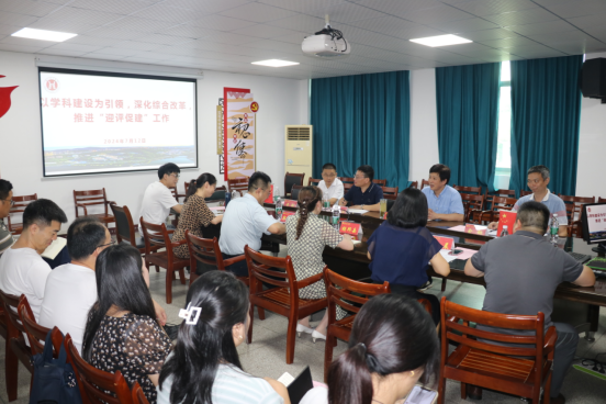 蔺绍江强调教务工作在教学质量提升中的关键作用,同时也对未来教务工作的优化升级提出了展望和建议。余钢指出要充分利用本科审核评估自评阶段,发现问题,加紧建设,真正做到以评促建。胡邦岳作了“人才培养工作和‘迎评促建’工作汇报”的专题发言,全面阐述了师范学院的办学定位与特色、专业建设以及人才培养等工作的亮点与不足,并提出了一系列措施与建议。郭栋谈到,面对新时代教育的挑战与机遇,学院需锐意进取,拓宽思维疆域,勇于探索新方法、新路径,积极总结经验教训,为培养更多优秀人才贡献力量。随后,师范学院班子成员及教研室主任就本科审核评估、学科建设、科学研究、教学改革、课堂建设等具体问题进行了交流。