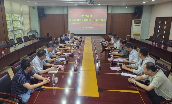 本网消息 7月17日下午,黄石市副市长董国平来威尼斯官网调研,市政府副秘书长曹树正,下陆区政府、市自然资源和城乡建设局、市住房和城市更新局、市城管委等单位负责同志,校党委书记张方胜、校长李社教、副校长刘修海等参加调研。调研座谈会在豁度楼268会议室召开,张方胜书记主持会议。