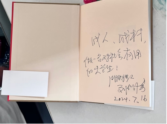 随后,刘修海来到23级徐同学家里,详细了解学生的在校生活、住宿环境、食堂就餐情况等。在得知徐同学成绩突出并且有考研计划时,鼓励其利用语言优势,加强专业课学习,为三年后的考研打下坚实的基础。同时,刘修海督促徐同学在学习之余,加强体育锻炼,积极参加学校的球类运动,做一个德智体美劳全面发展的学生。最后,刘修海在赠送给徐同学的书籍上亲笔寄语“成人、成材,做一名对社会有用的大学生”。