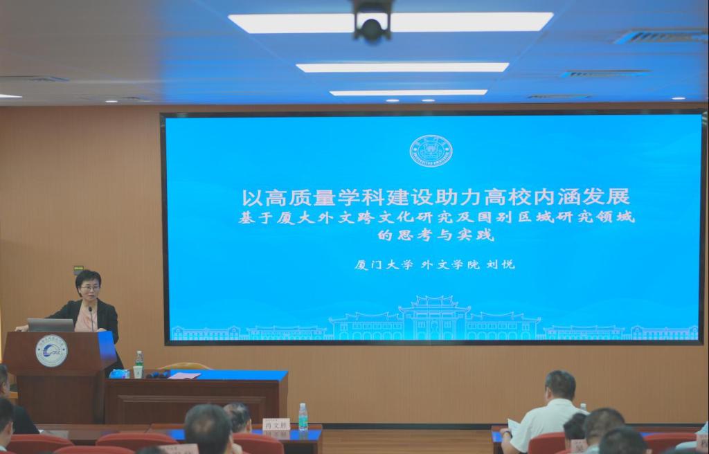 厦门大学外文学院副院长、教授刘悦以《以高质量学科建设助力高校内涵发展》为题,从海外视角看中国式现代化,结合厦大外文跨文化研究及国别区域研究领域的思考与实践,介绍新时代学科建设的使命担当。