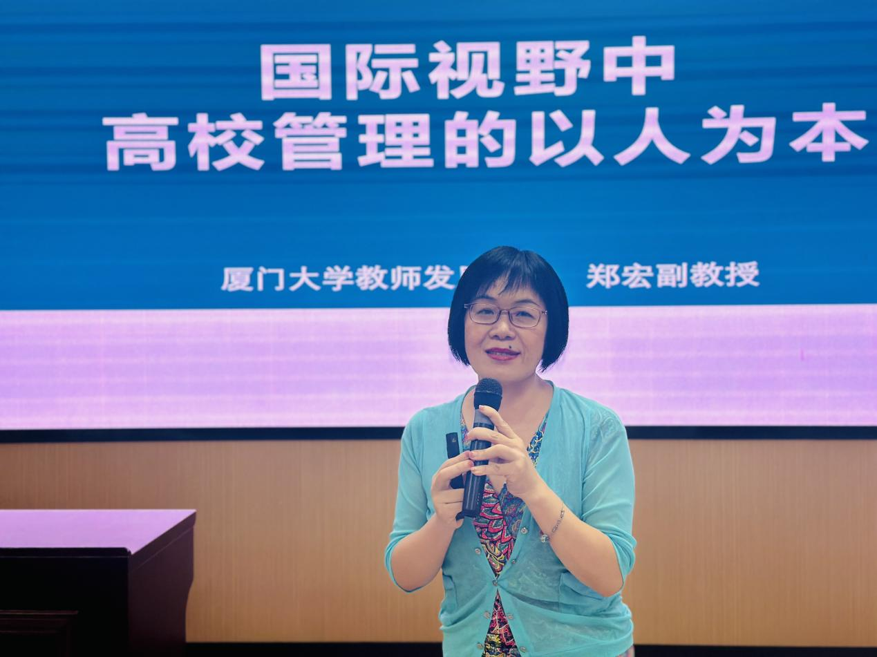 厦门大学教师发展中心副教授郑宏以《国际视野中高校管理的以人为本》为题,围绕“以人为本”的管理理念,结合国际高校生动的案例,主要从教师和学生两个方面深刻阐述高校以人为本的核心是主动服务,促使师生产生强烈的归属感和认同感。