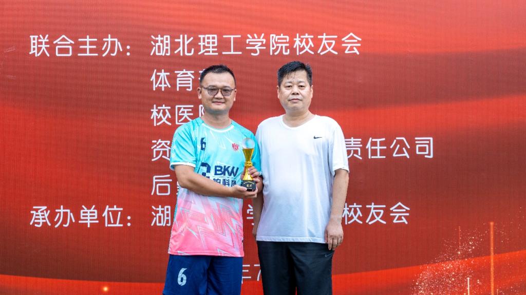 颁奖仪式在足球场举行。校党委常委、副校长冯运仿为获奖队伍颁奖。他表示,校友总会将持续开展湖理校友足球赛,把它打造为校友活动的品牌赛事,打造为凝聚校友与母校的感情、丰富校友体育生活的有效平台。