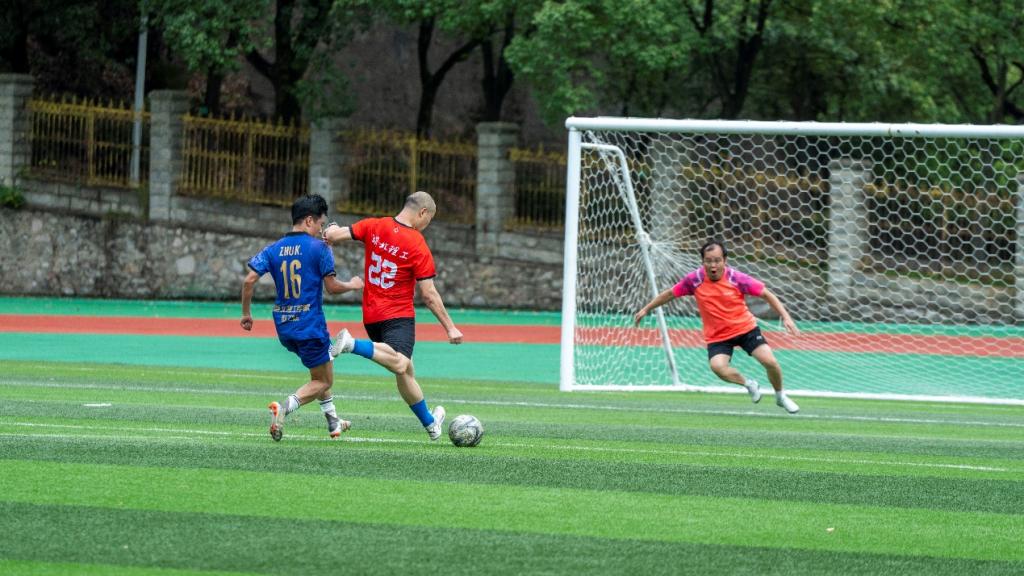28号上午,校友联队与教工队举行联谊赛,最终双方以3:3的比分握手言和。