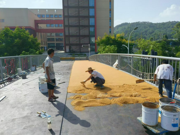 (图为西门人行天桥改造项目铺装彩色透水混凝土)