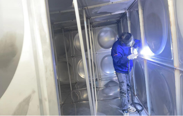 (图为学生宿舍洗浴热水项目焊接水箱)