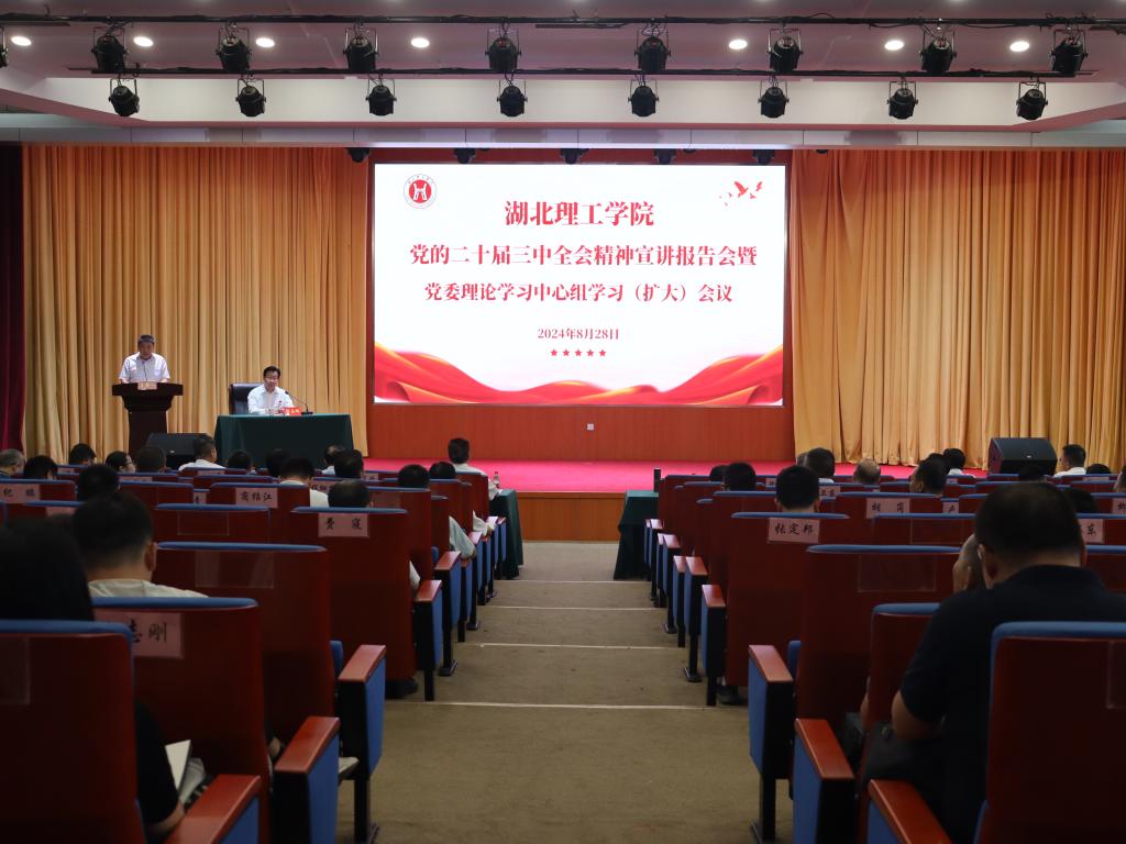 本网消息 8月28日下午,学校在208报告厅举行党的二十届三中全会精神宣讲报告会暨党委理论学习中心组学习(扩大)会议。省委宣讲团成员、省委统战部副部长、省社会主义学院党委书记邵志祥受邀来校作专题辅导报告。全体校领导,全体中层干部,学校各民主党派主委、副主委参加会议。会议由党委书记张方胜主持。