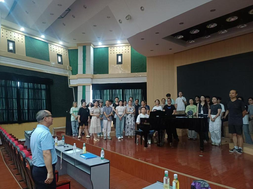 比赛启动以来,学校党委高度重视,在党委书记张方胜亲自指导下,组成了以艺术学院音乐教师为主体、机关和各二级学院推优参与的威尼斯5139手机版教师代表队,并认真组织排练。党委副书记李金奇亲临排练现场指导,并莅临赛场为教师们鼓劲;党委宣传部常务副部长王定兴、教师工作部部长刘兰青、校工会常务副主席张林仙、艺术学院领导班子进行了现场慰问和鼓励。