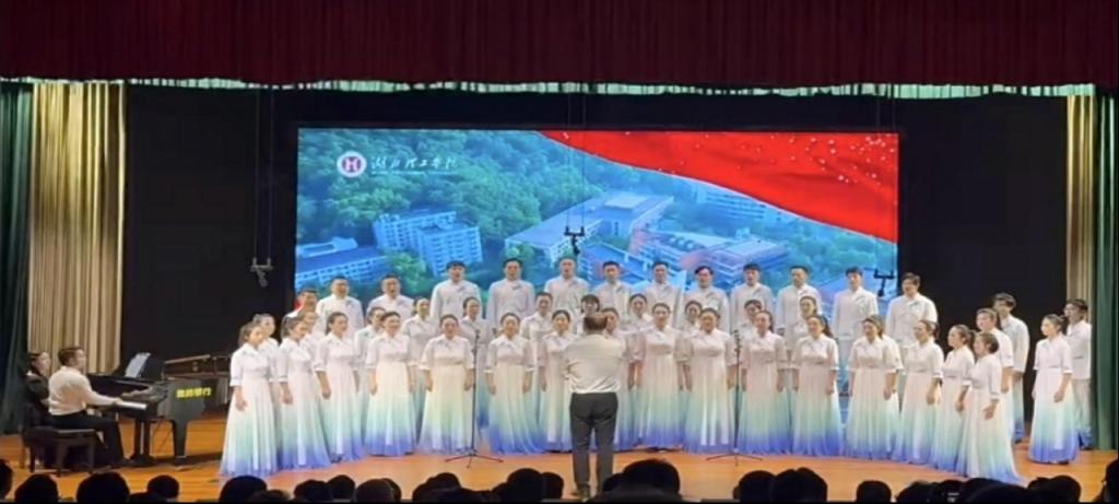 在点石成金的地方,在千年炉火的身旁,以科技创新的名义诞生,为城市发展培育万千栋梁,湖北理工,追寻的是青铜摇篮的余温,支撑的是钢铁之城腾飞的翅膀。青龙山下,磁湖之滨,五十年培桃育李,为中国式现代化湖北实践,再创新时代的荣光……随着主持人朗朗的报幕声,威尼斯5139手机版教师代表队迈着整齐步伐,神采奕奕的第一个出场表演歌曲《追寻》。琴声悠扬、歌声嘹亮,优美的旋律中饱含着深情,全场观众为这精彩的演唱报以热烈的掌声。