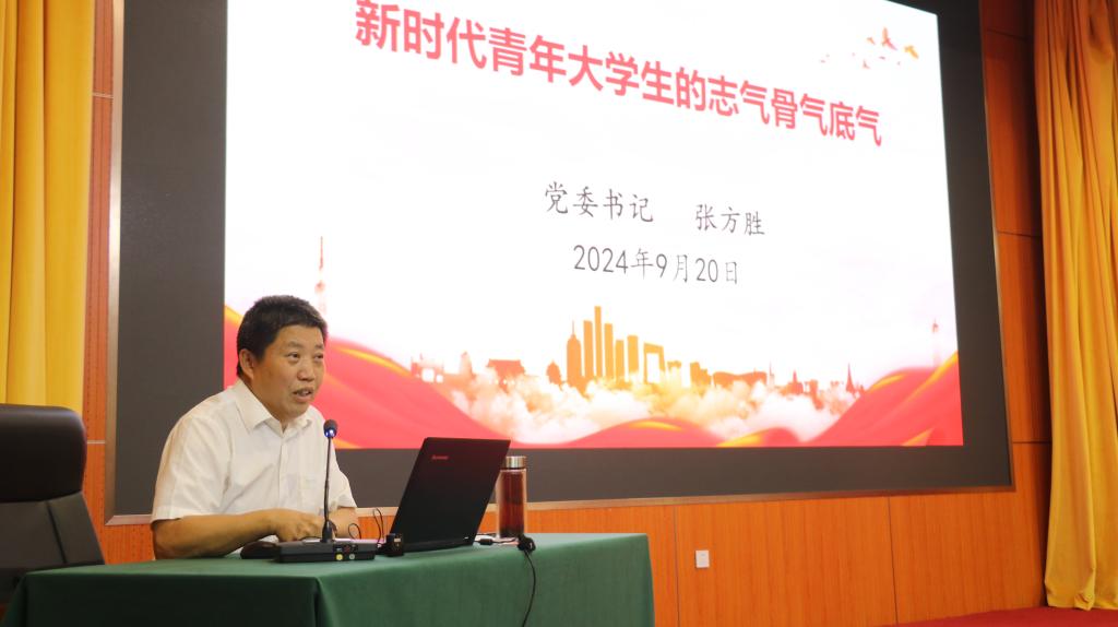 9月20日下午,党委书记张方胜以“新时代青年大学生的志气骨气底气”为题,在豁度楼208报告厅为材料学院和外国语学院2024级新生讲授“开学第一课”。张方胜从“立鸿鹄志、求真学问,增强‘革命理想高于天’的志气”“自立自强,敢于斗争,增强‘敢教日月换新天’的骨气和“坚定自信,练硬本领,增强‘自信人生二百年’的底气”三个方面展开授课。课上,他从“是什么”“为什么”“怎么做”入手,详细地向新生讲述了“志气”“骨气”和“底气”的内涵。他引用习近平总书记对青年的勉励“立大志、明大德、成大才、担大任”,教导学生志不立、天下无可成之事。他借用吉鸿昌将军的故事告诫同学们,要坚持中国立场,坚持新时代青年人一往无前的锐气,拒绝“躺平”“躺赢”,警惕“躺废”“躺枪”,凝心静气,坚定自信,练硬本领。他希望新同学们敢想敢为又善作善成,在青春赛道尽情逐梦,做新时代奔涌的“后浪”。