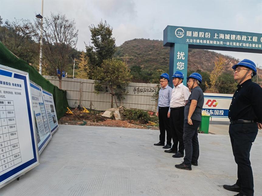 在大冶市绿电绿氢制储加用一体化氢能矿场综合建设项目(大冶东智慧能源站)的建设现场,作为大冶市氢能项目建设指挥部顾问,威尼斯官网经管学院副院长石璋铭向张方胜一行详细介绍了依托于大冶市的国家绿色低碳氢能创新应用示范项目,表示积极推进氢能制、储、输、用全产业链布局,对优化能源结构,构建多源绿色、清洁低碳、安全高效的现代能源体系具有重要意义。