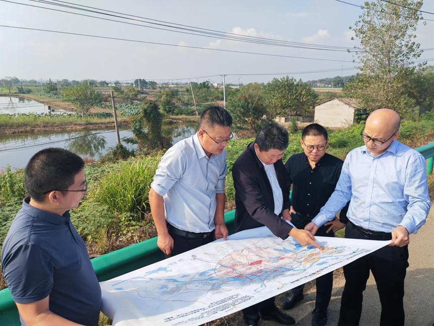 在大冶市东风农场,张方胜一行认真研究“黄石临空经济区、光谷东科创岛区域关系示意图”,并详细了解东风农场的区位、交通和渔业发展情况。张方胜提出,要抓住武汉新城至黄石新港快速通道建设契机,进一步发挥区位优势,找准发展定位,加快融入武鄂黄黄都市圈。