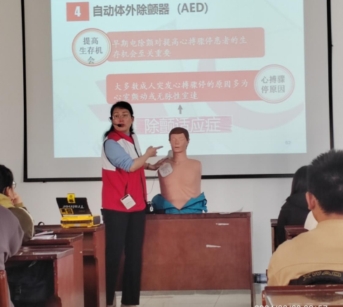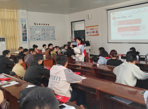 培训中,李菊老师结合专业理论知识,对救护概论、心肺复苏,创伤救护、常见急症以及意外伤害等应急救护知识进行了详细讲解,并针对各种不同环境中可能出现的突发情况举例说明。本次培训将理论授课、实操训练与考评同步进行,穿插进行案例分析、互动交流、现场演示、实践指导、练习作业等训练。在培训过程中,全体参训师生积极参与理论学习,深入进行实操练习,使初级救护员培训工作取得了实效。