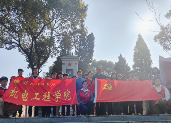 本网消息 人间三月芳菲始,又是一年清明时。3月26日上午,机电工程学院党总支部副书记胡涛,专升本学生党支部书记方志刚、中外合作办学学生党支部书记程媛、学生党员代表赴皇姑岭革命烈士纪念地开展党史学习教育暨清明祭英烈活动,深入开展党史学习教育,缅怀革命英烈,传承红色基因,弘扬英烈精神,激发师生们的爱国情怀和社会责任感。
