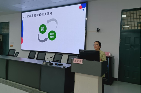 谢立兰教授此次讲座主题为《抗病毒药物的研发策略》。她首先强调了抗病毒药物研发的重要性和紧迫性,随着病毒的不断变异和传播,研发有效的抗病毒药物成为全球范围内的重要课题。她讲解了病毒的生命周期、感染机制等方面的知识,以及药物研发流程中药物筛选、临床试验等环节。同时,她还简要介绍了新兴技术在抗病毒药物研发中的应用,当前面临的挑战与方向。