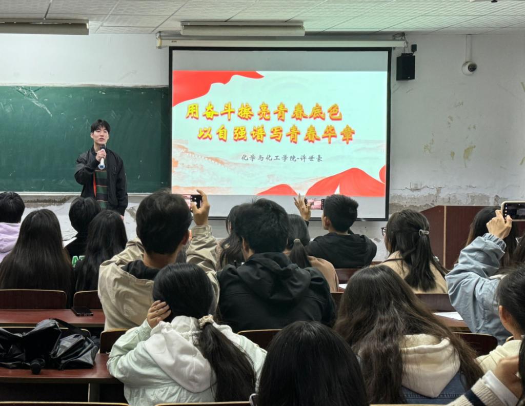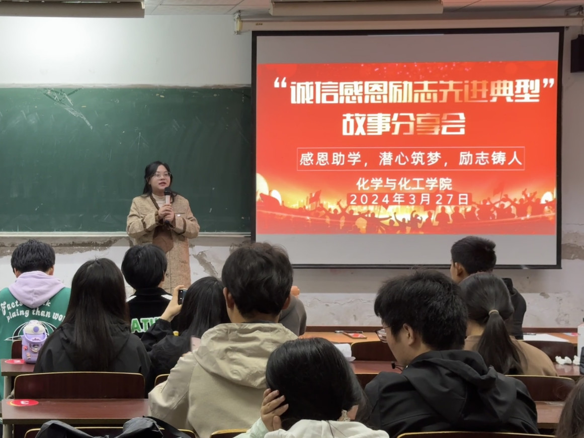 诚信感恩教育活动期间,化学与化工学院开展“感恩励志先进典型”故事分享会,邀请学院获得校“十大学生标兵”、国家励志奖学金等10名同学进行感恩励志演讲。比赛中,选手们从不同的视角、不同的层面,结合自身经历阐述了自己对资助政策的深刻感悟、表达了对国家和学校助学政策的感恩,并承诺将发扬自立自强、努力奋斗的精神,以真才实学回报国家与社会。他们“穷且益坚,不坠青云之志”的精神激励着广大学生乐观向上、勇挑重任、担当有为、励志成才。