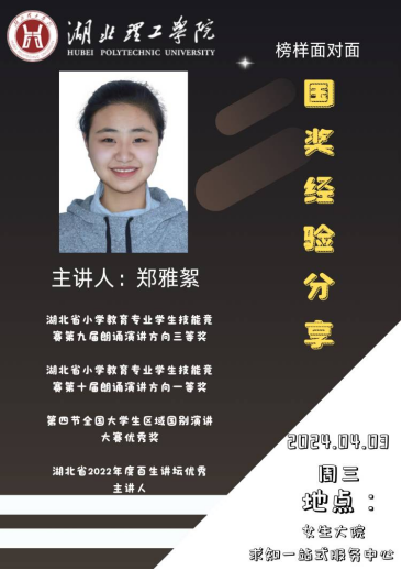 分享会上,郑雅絮同学从选择、努力、全面、动机四个层面来给同学们的职业规划和日常学习上提供了良好的建议。她结合自身经验为同学们讲解了她收获国家奖学金所付出的努力,同时还教导同学们要注重每一次学院比赛、省级比赛和国家级比赛的机会,不断提升自身的实力。