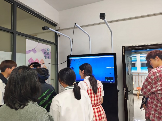活动中,同学们参与VR职业体验、职业性格分析、职业访谈模拟等活动。VR职业体验让大家沉浸职场之中,感受实际工作情景,通过体验激发职业向往和兴趣;职业性格分析以互动游戏为载体,探索分析同学们自身性格特点和职业倾向,找准适合自身的职业发展方向;职业访谈模拟通过角色扮演、模拟面试、商务谈判等,在体验中提升大家人际沟通、谈判等方面的综合素养。