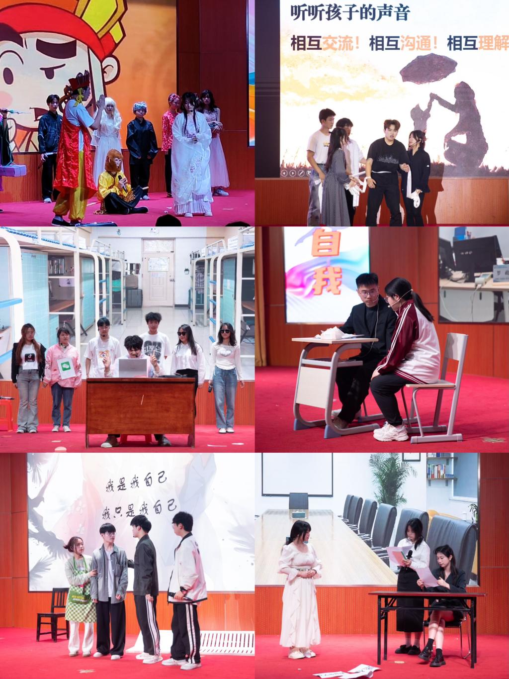 在为期两天的比赛中,共有14支队伍参赛。参赛队伍的剧情涵盖了亲子冲突、自我探索与自长、大学生拖延、网络暴力、流言蜚语、同伴关系、就业问题等大学生常见的心理问题。其中环境学院的作品《流言迷局:三击求真》以流言蜚语的危害为主题,演绎了流言蜚语有时也能成为“杀人”的武器,启示观众在不清楚事情的真相时,要三思而后行,避免祸从口出。计算机学院的作品《我是谁》从自我探索与自长的角度出发,讲述了大四学生考研失败闭门不出、进而自我否定、内心不断自我冲突,经过专业的心理辅导最终释怀的故事;艺术学院的作品《别让爱成为枷锁》以亲子冲突为出发点,演绎了亲子冲突下亲子关系从矛盾到和解的过程,启发了学生应对亲子冲突的思考。各参赛队以饱满的热情、真挚的情感和精彩的表演共同为观众呈现了一场震撼心灵的视听盛宴。