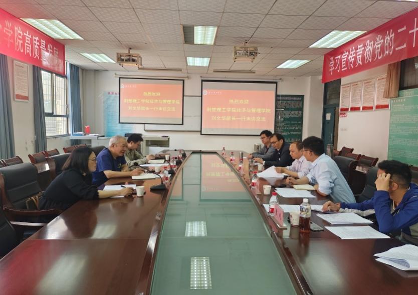 本网消息 4月23日上午,荆楚理工学院经济与管理学院刘文华院长一行莅临我院,就新获批的数字经济专业的专业建设与我院进行了深入的交流与探讨。此次交流会议由教学副院长黄小荣主持,院长戴伟、数字经济专业负责人李川及参与专业申报的老师汪凌志、代峰参会。