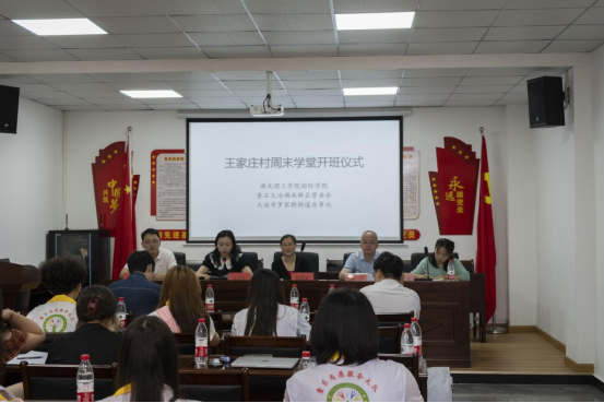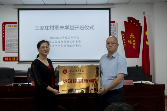 开班式上,郭淑英代表国际学院与罗家桥街道签订了“共建‘周末学堂’项目协议”,为王家庄村授予了“大学生社会实践(志愿服务)基地”牌匾,与会领导为志愿者颁发了聘书,志愿者、家长还签订了志愿服务协议和安全承诺书。