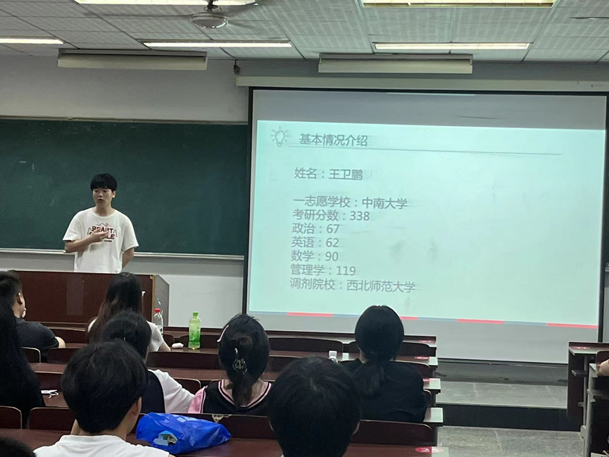 本网消息 4月27日晚,经济与管理学院考研经验分享会在J3-203教室成功举行。此次分享会旨在为即将踏上考研征程的同学提供经验指导,帮助他们更加有效地备考。