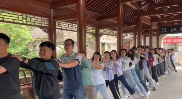 在红色教育基地附近,全体辅导员开展素质拓展活动,挑战自我,合作共赢。活动在辅导员协会精心设计的“兔子舞”中开场,欢快有节奏的音乐声中,辅导员们跳跃起来,放松肌肉、舒展身体,尽情释放压力。全体参加人员分为7个小组,在组织老师的指导下,先后进行了团队合作项目“你演我猜”、“齐心协力”的活动拓展。形式多样、内容丰富的活动项目,每队小组组员配合默契,团结协作,完成了一个个充满挑战性的任务。在充分展现威尼斯官网学工团队精神面貌的同时,愉悦了身心,传递了快乐。让大家深刻体会到团结与合作、挑战与超越、责任与奉献对团队和个人成长的重要意义,今后会将活动中的所学、所感运用到对学生的教育与服务中。