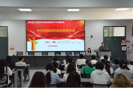 本网消息 5月8日下午,医学院在422学术报告厅举办了一场中华民族发展史宣传教育讲座,特邀中共黄石市委宣讲团成员、马克思主义学院党总支副书记翟颖副教授作了主题为《中华民族的形成与发展历史》的专题讲座,引导学生铸牢中华民族共同体意识。报告由医学院党总支副书记柳红星主持,医学院百余名学子聆听了报告。