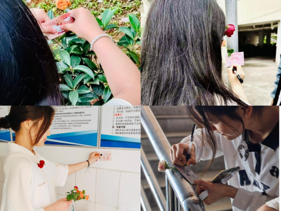 此次活动分为“现场体验”和宿舍“寻心”两个环节,在现场体验中,院心理部学生工作人员将两块粘有“固有标签”展板分别放置在求实一站式社区、k1教学楼大厅;并准备了鲜花和糖果,在活动现场鼓励学生们勇敢撕下“标签”,以“行”印“心”,亲手写下属于自己对未来的展望,重新贴在展板上之后,可向工作人员领取鲜花和糖果;在毓成公寓的角角落落,被悄然放置了“美好的句子”和一朵鲜花,学生们按照电子地图寻找那一抹美好。