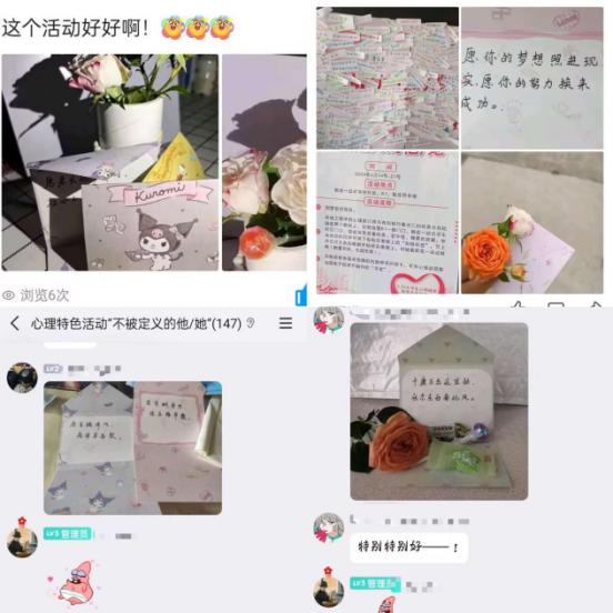 人生无需被定义,自我即是最好的诠释,张桂梅校长曾说“我生来就是高山而非溪流,我欲于群峰之巅俯视平庸的沟壑。我生来就是人杰而非草芥,我站在伟人之肩藐视卑微的懦夫!”。爱人如养花,而最好的花匠就是自己,此次“不被定义的他/她”活动旨在鼓励湖理学子们能尽情发现更好的自己,勇于为无限可能的“他/她”撕下标签,机电工程学院一直以来坚持全面落实“五育并举”促进学生心理健康理念,以德育心、以智慧心、以体强心、以美润心、以劳健心,坚持“三全育人”校园新“心”动力、“育心”常浸润、赋能“心”生力;院心理部学生表示将持续开展心理健康特色活动,促进其成为朋辈中心理健康的促进者和守护者,为湖理心理健康服务工作贡献力量,为校园营造了一个更加包容、自由的良好氛围。(通讯员 谭梅 宋子贤 张喆)
