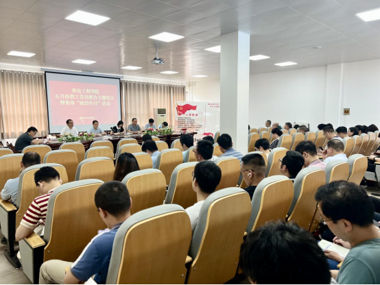 本网消息 学纪明责筑忠诚,担当实干促发展。5月20日,机电工程学院在K1-414会议室开展五月份教工党员联合主题党日暨集体“政治生日”活动,机电工程学院全体教工党员参与此次活动。活动由智能制造工程党支部书记陈国兴主持。