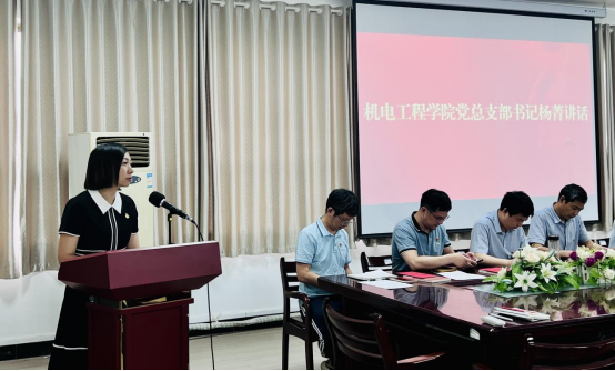 机电工程学院党总支部书记杨菁强调,在新时代新征程上,必须坚持以习近平新时代中国特色社会主义思想为指导,深入学习贯彻习近平总书记关于党的建设的重要思想;加强纪律教育,并不断提高政治判断力、政治领悟力、政治执行力、明纪守纪、不忘初心;全院教师要做到知责于心、担责于身、履责于行,以高质量党建促进学院高质量发展,为学校的“双提升”贡献力量。