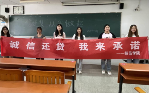 活动开始,学生会秘书处工作人员全可向大家介绍了国家助学贷款还款政策,同时强调了诚信还贷的重要性。活动过程中,同学们认真听取并了解关于诚信贷款的内容以及失约惩戒与失信惩戒机制。活动最后,工作人员组织同学们在“诚信还贷,我来承诺”的横幅上签名,并进行合影留念。