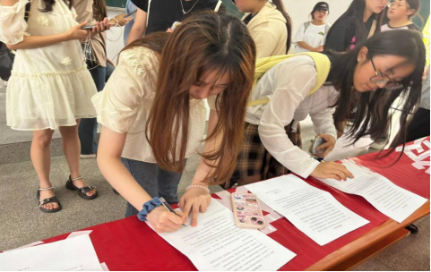 本网消息 5月21日,为了提高学生的诚信意识和信用观念,培养大学生心怀感恩,知信守信的人格品质,增强法律意识,及时履行助学贷款合同,保持良好的个人信用记录,师范学院在阶梯教室J1-207开展了“诚信还贷,我来承诺”签名活动。