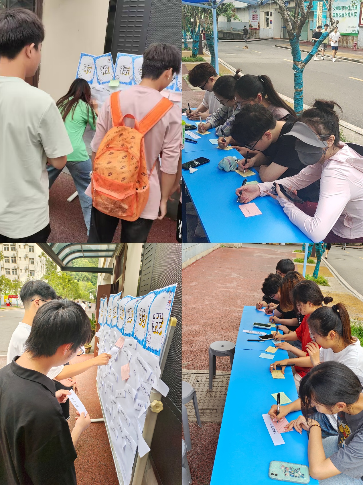 在活动地点腾龙一区心情驿站门口,材料学院及其他学院路过的同学,有的驻足观看,有的拿起笔来发表意见,有的互相交谈发表意见等等。从更换纸条的内容来看,大多数同学表达了自我鼓励,也有一部分同学表达了对乱给别人贴标签行为的愤怒。活动达到了预期的效果。(通讯员 王馨茗)