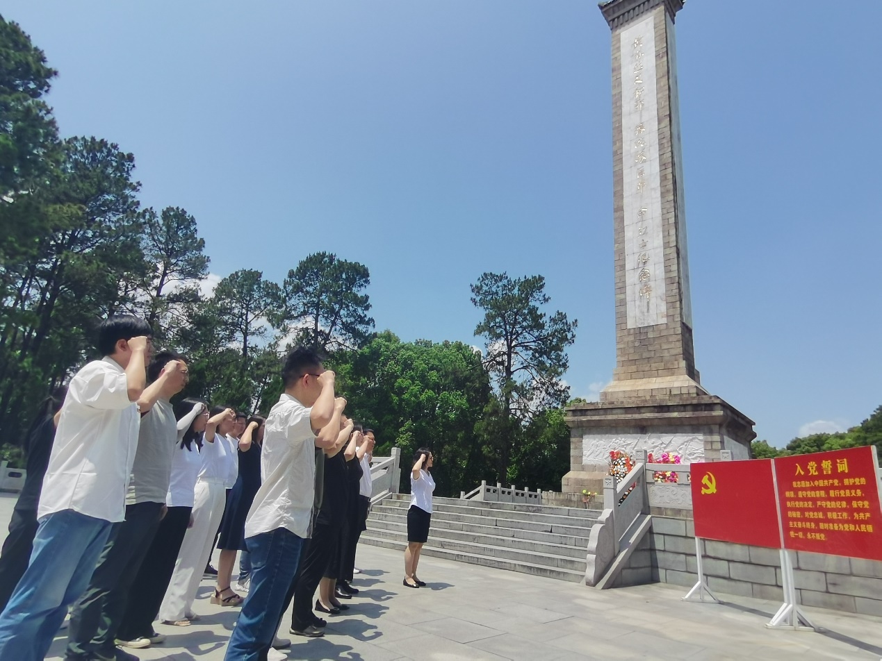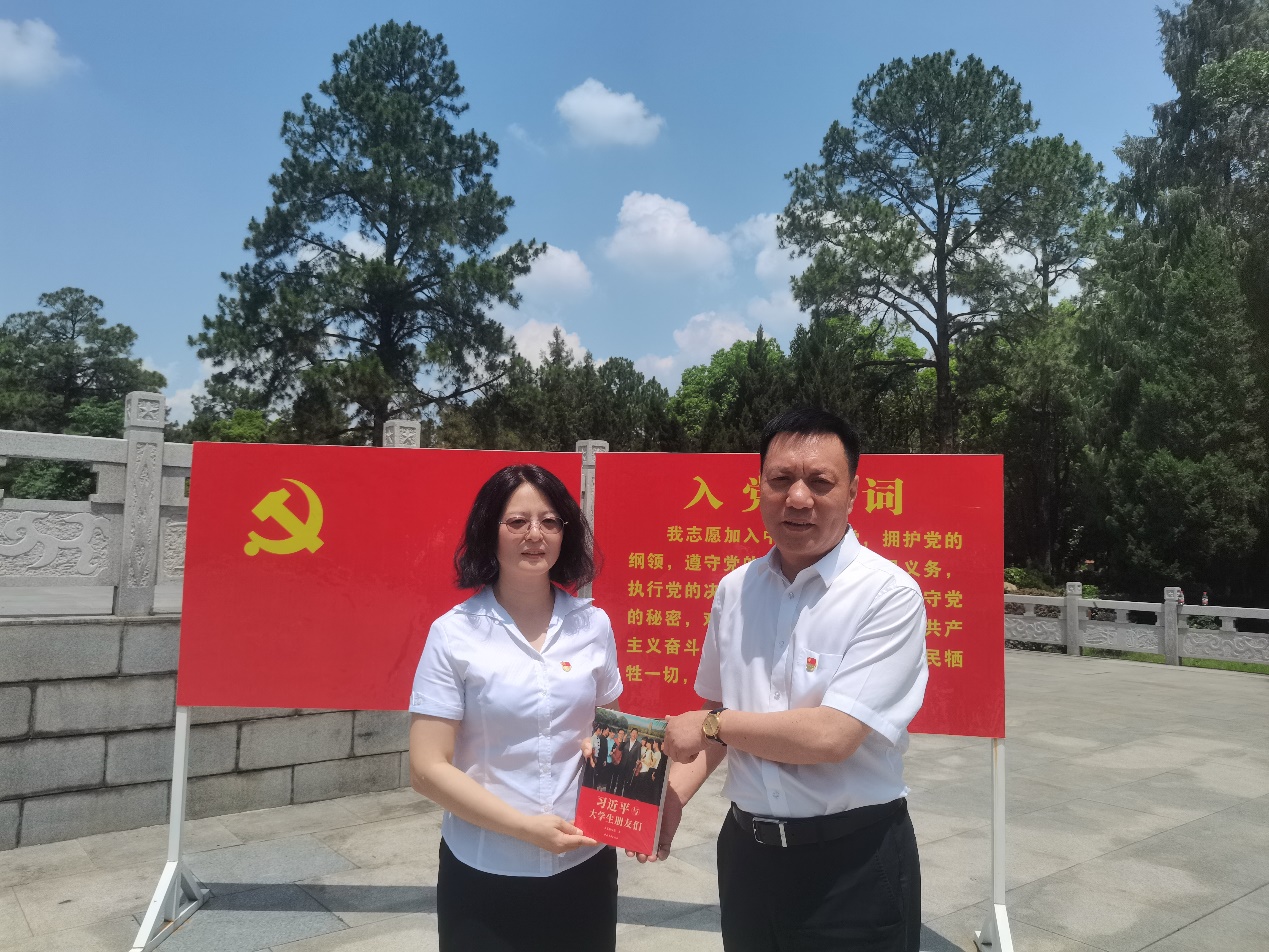 在麻城烈士陵园,大家怀着无比敬仰之情,在黄麻起义和鄂豫皖苏区革命烈士纪念碑前重温入党誓词,党总支部为无机非金属材料教师党支部书记阮敏同志举办了隆重的“政治生日”。