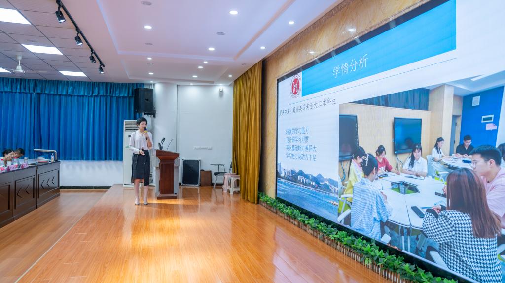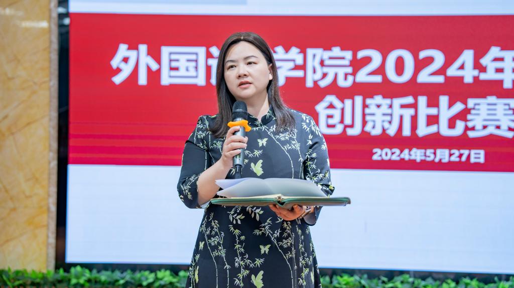 “推动教学创新,上好一门课,培养外语类应用型人才”为本次竞赛主题。活动旨在进一步推进外国语学院教育教学高质量发展,落实立德树人根本任务,助力外语类课程思政建设和新文科建设,推动信息技术与教育教学融合创新发展,展示课程教学创新成果,提升教师教书育人能力和外语应用型人才培养质量,打造教育教学改革风向标。竞赛分为现场汇报和评委提问两个环节。通过初赛选拔出来的8位教师均为承担“三进”课程以及校级、省级一流课程的教师,他们分别围绕课程概述、痛点分析、创新思路、创新举措、创新成效等方面进行汇报展示。