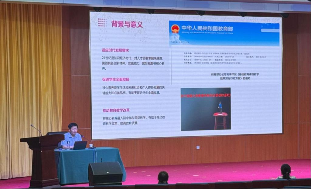 毛主任从核心素养与课堂教学的内涵讲到到核心素养在初中学科中的体现,提出了基于核心素养的初中学科课堂教学策略:创设真实情境,激发学生兴趣;开展合作学习,培养团队写作能力;强化实践应用,提升学生问题解决能力;注重评价反馈,促进学生全面发展。并且以初中学科课堂教学中培养核心素养的实践案例充分说明核心素养与课堂教学的关系以及提出了目前面临的挑战与解决策略。